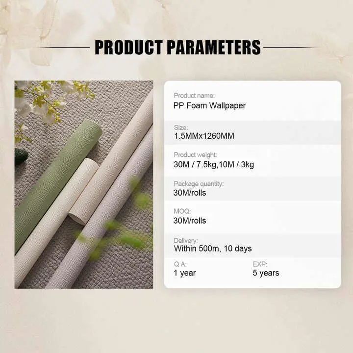 · Zvekudzivirira uye Zvemvura Zvemvura: Yedu PP Wallpaper inogadzirwa kubva kune yakakwirira-mhando Polypapylene Chinyorwa, ichiita kuti zvivepo zvinyoro-nyoro uye kupisa, kuita kuti imba dzakasiyana siyana, kusanganisira imba, yekutengesa, uye nzvimbo yekutonga.